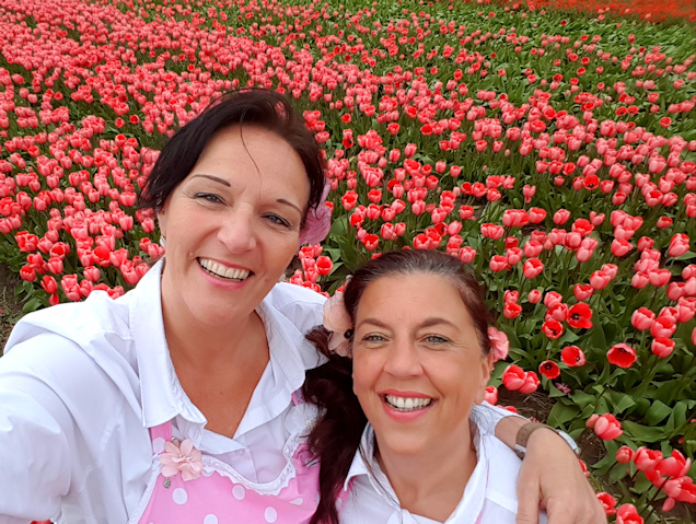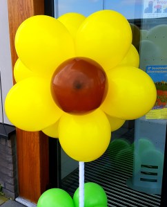 Overal bloemen! Bij de ingang van De Duinpan staan twee grote zonnebloemen van ballonnen. Op de revers van de