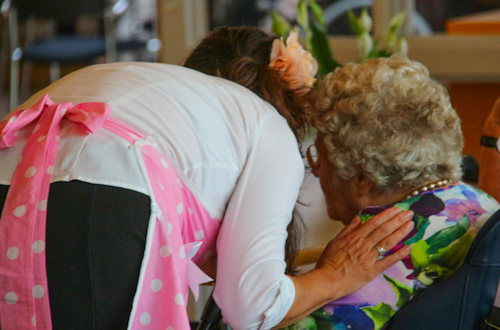 Hij ontfutselt ons een heuse zachte G, doet de rivieren die ons, Westerlingen, anders zouden maken dan de Zuiderlingen, ter plekke opdrogen. Na het lied klinkt zijn Á la bonheure! Limburgser dan ooit. Samen met alle bewoners en de verzorgenden zingt hij Carnaval in Maastreech voor ons. Een cadeau! We zijn zelf even stil, genieten en als het lied is afgelopen, voelen we ons één met de Limburgers.