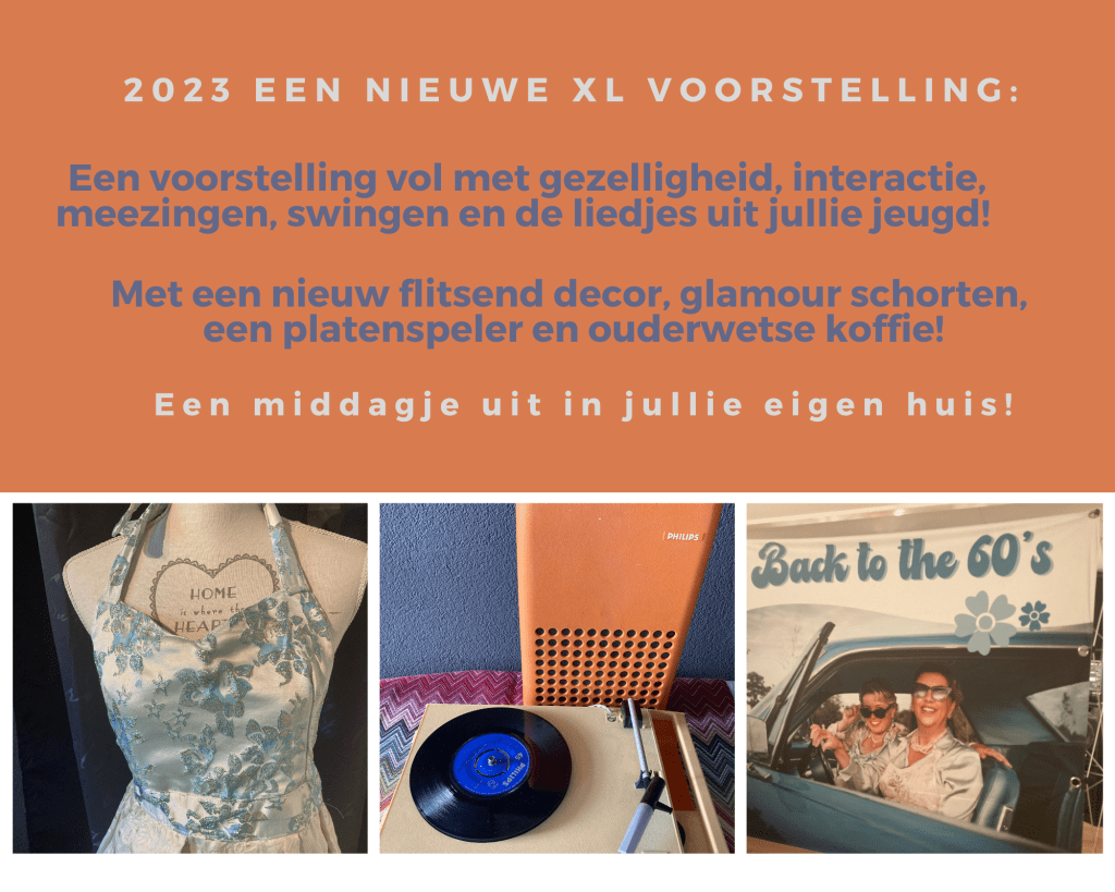 Een ruimte waar je gaat optreden, eerst aankleden met een eigen decor, koffiespulletjes en andere props is ontzettend leuk om te doen. Het zorgt voor een gezellige nostalgische sfeer en geeft ons publiek het gevoel en idee dat zij een middagje uit zijn in eigen huis. We krijgen heel vaak van ze terug dat ze dit ook daadwerkelijk zo hebben ervaren, dat vinden we geweldig, daar doe je het voor!!